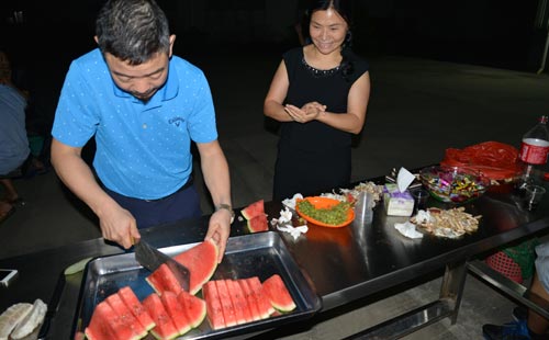 接著壽星們說出了自己的人生目標(biāo)和目前狀況,表示自己將繼續(xù)埋頭苦干,拼命硬干,先是要對得起自己,再者要報效公司。下一個環(huán)節(jié)是表演節(jié)目,壽星們更是破桑大唱,似乎喊出了自己此時無盡激動的心情,歌聲欲振旁林之樾,辛總也跟著傾情演唱,意氣高昂,蕩氣回腸,為生日晚會聲威助陣,把生日會的氣氛推向了高潮。
